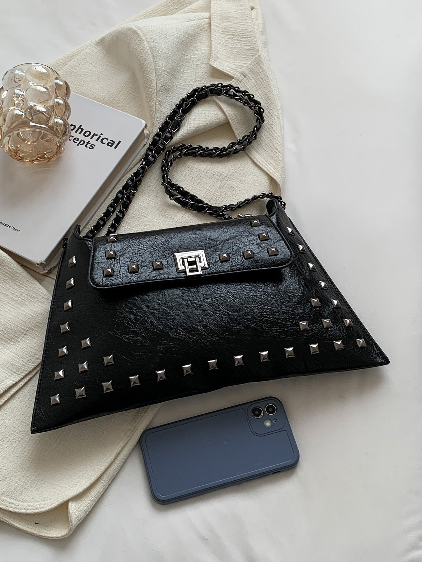 Quadratische Tasche mit Nieten Dekor, Klappe
